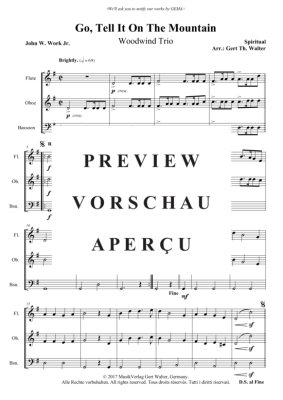Go Tell It On The Mountain - Noten für Flöte, Oboe, Fagott Spiritual