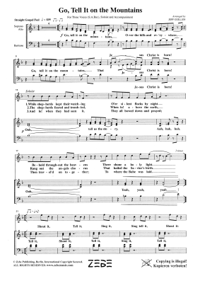 Dreiteilige, moderne Bearbeitung des Gospelsongs für dreistimmig gemischten Chor. Neben der Gesangsausgabe erhalten Sie automatisch die Partitur mit sorgfältig ausnotierter Klavierbegleitung und Akkordsymbolen.