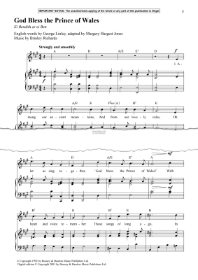 God Bless The Prince of Wales - Noten für Gesang, Klavier Brinley Richards