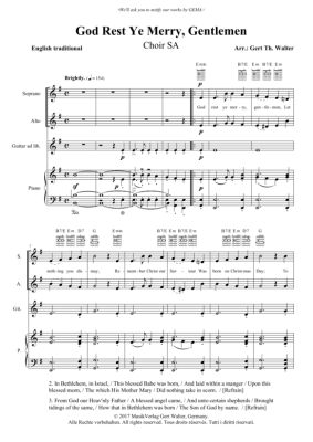 God Rest Ye Merry, Gentlemen - Noten für Frauenchor SA + Klavier/Gitarre opt. Traditional