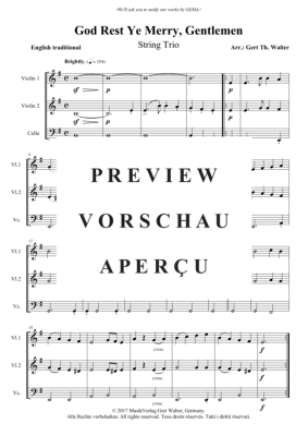 God Rest Ye Merry, Gentlemen - Noten für 2x Violine + Cello Traditional
