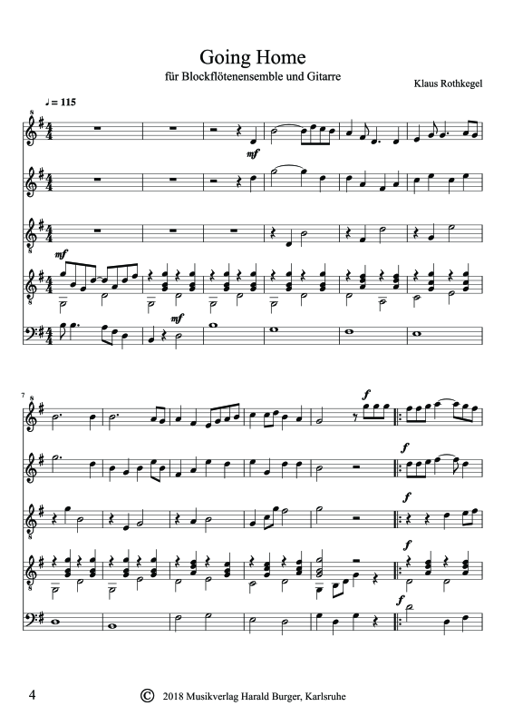 Going Home (Partitur) (Ensemble Blockflöten und Gitarre)