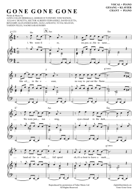 Gone Gone Gone - Noten für Klavier, Gesang & Akkorde David Guetta, Teddy Swims, Tones And I