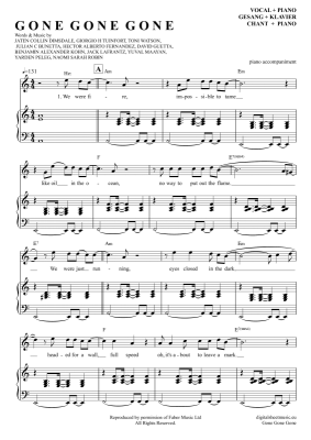 Gone Gone Gone - Noten für Gesang mit Klavierbegleitung David Guetta, Teddy Swims, Tones And I