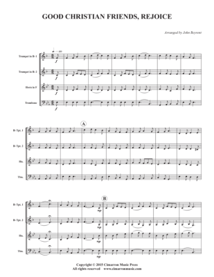 Good Christian Friends, Rejoice - Noten fĂŒr BlechblĂ€serquartett John Beyrent