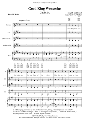 Good King Wenceslas - Noten für Frauenchor SAA + Klavier/Git optional Traditional