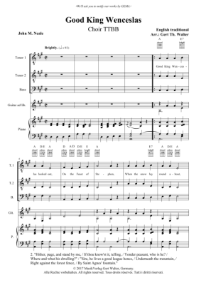 Good King Wenceslas - Noten für Männerchor TTB + Klavier/Git. optional Traditional