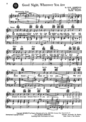 Good Night, Whereever You Are - Noten für Klavier und Gesang Popular Standard