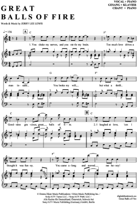 Great balls of fire - Noten für Klavier und Gesang Jerry Lee Lewis