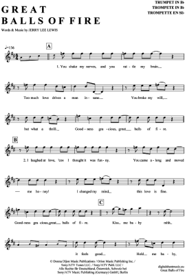 Great balls of fire - Noten für Trompete in B Jerry Lee Lewis