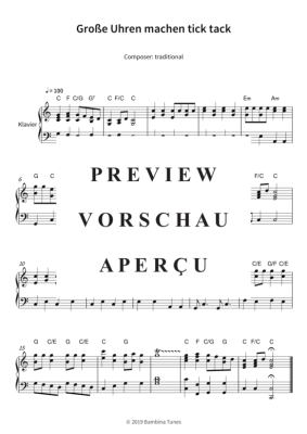 Große Uhren machen tick tack - Noten für Klavier Solo traditional
