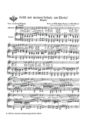 Grüß mir meinen Schatz am Rhein! - Noten für Klavier und Gesang Rumba
