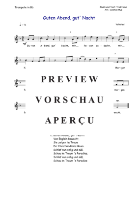 Guten Abend, gut´ Nacht ist ein beliebtes Volkslied und für den fortgeschrittenen Trompeter bestens geeignet. Dazu 2 Liedstrophen. (F - Dur)