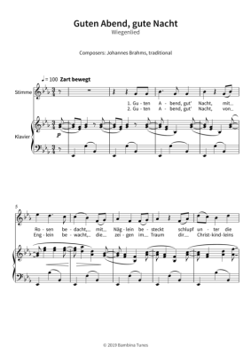 Guten Abend, gute Nacht - Wiegenlied - Noten für Gesang + Klavier, Gitarre traditional