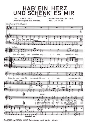 Hab ein Herz und schenk es mir - Noten für Klavier und Gesang Howard Carpendale