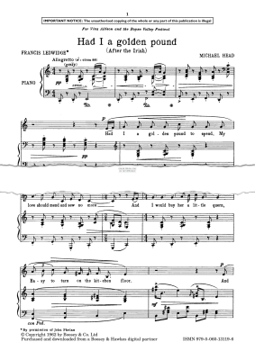 Had I a golden pound - Noten für Gesang, Klavier Michael Head