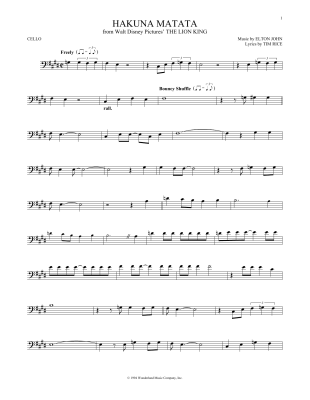 Hakuna Matata (from The Lion King) - Noten für Violoncello Elton John