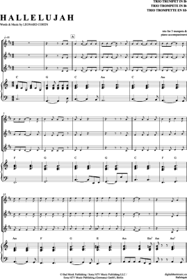 Hallelujah - Noten für Trompeten Trio + Klavier Leonard Cohen