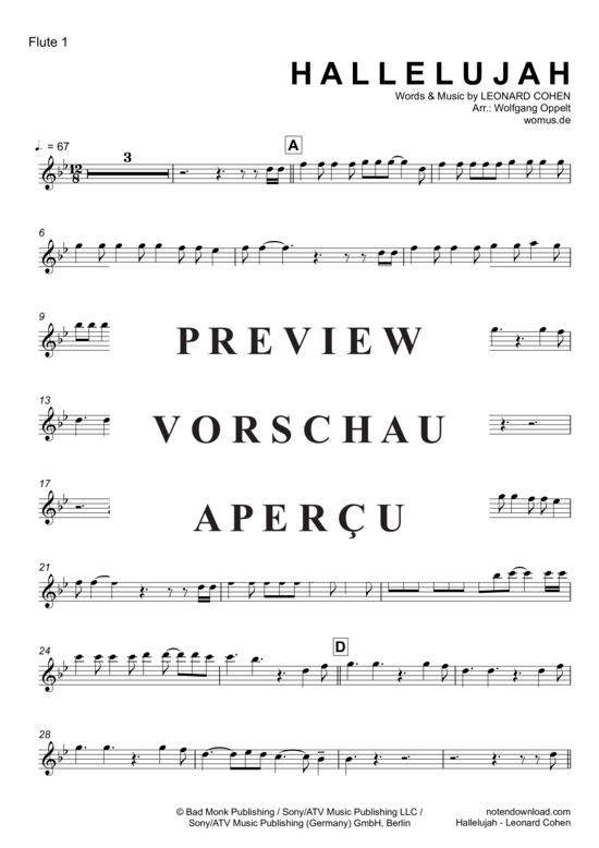 Hallelujah (Quartett für 3 Querflöten + Klavier/Fagott opt.)