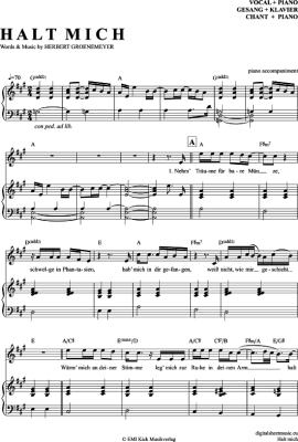 Halt Mich - Noten für Gesang mit Klavierbegleitung Herbert Grönemeyer