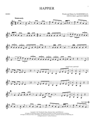 Happier - Noten für Horn Marshmello & Bastille