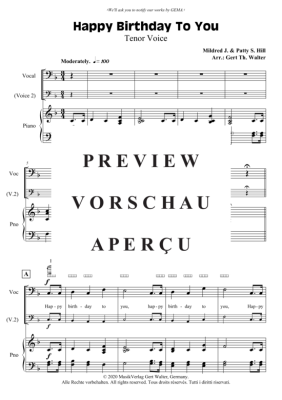 Happy Birthday To You - Noten für 2x Gesang TB + Klavier Mildred Hill/Patty Hill