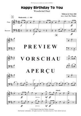Happy Birthday To You - Noten für Duett Flöte + Fagott Mildred Hill/Patty Hill