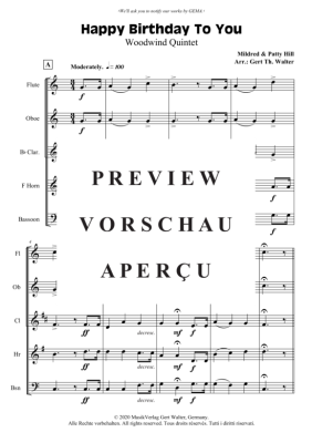Happy Birthday To You - Noten fĂŒr HolzblĂ€serquintett Mildred Hill/Patty Hill