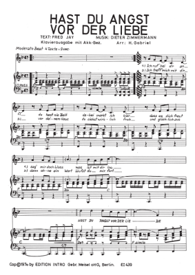 Hast du Angst vor der Liebe - Noten für Klavier und Gesang Rex Gildo