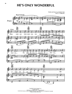 He's Only Wonderful (from Flahooley) - Noten für Gesang, Gitarre, Klavier Sammy Fain