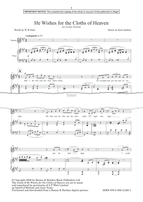 He Wishes for the Cloths of Heaven - Noten für Gesang, Klavier Karl Jenkins