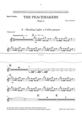 Healing Light (from 'Peacemakers') - Noten für Violine Karl Jenkins