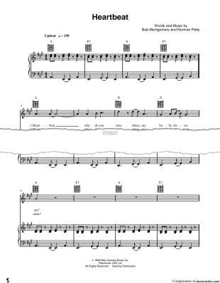 Heartbeat - Noten für Gesang, Gitarre, Klavier Buddy Holly