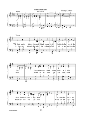 Heimliche Liebe - Noten für Klavier und unterlegter Text Hardy Kickers