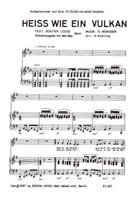 Heiß wie ein Vulkan - Noten für Klavier und Gesang Ricky Shayne