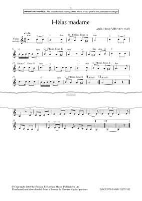 Hélas Madame - Noten für Gitarre, Klavier, Violine Henry VIII