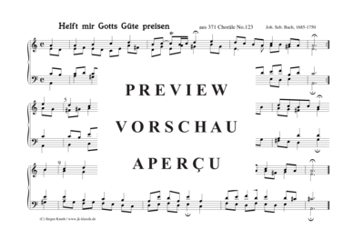 Helft mir Gotts Güte preisen (aus 371 Choräle No.123) - Noten für Klavier/Cembalo/Orgel Solo Johann Seb. Bach