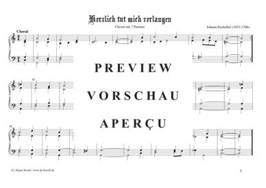 Herzlich tut mich verlangen (Choral mit 7 Partiten) - Noten für Orgel/Cembalo/Klavier Solo Johann Pachelbel