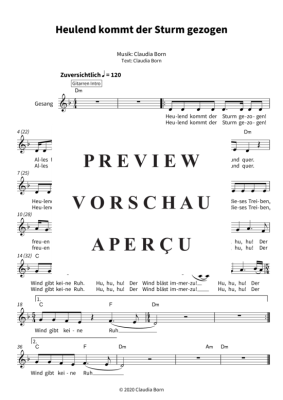 Heulend kommt der Sturm gezogen - Noten für Gesang und Akkorde Leadsheet Yvaine
