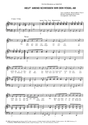 Heut Abend schiessen wir den Vogel ab - Noten für Klavier und Gesang Gottlieb Wendehals