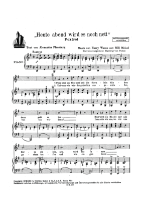 Heute abend wird es noch nett - Noten für Klavier und Gesang Foxtrott