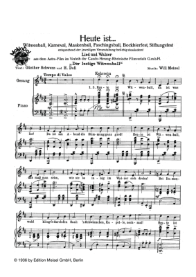 Heute ist ... - Noten für Klavier und Gesang aus: Der lustige Witwenball (Film)