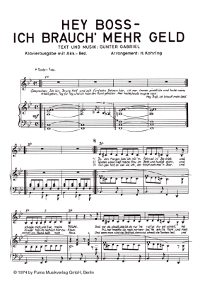 Hey Boss, ich brauch mehr Geld - Noten für Klavier und Gesang Gunter Gabriel