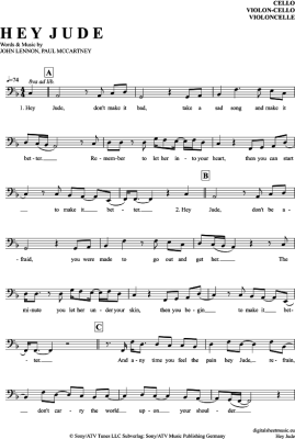 Hey Jude - Noten für Violon-Cello The Beatles