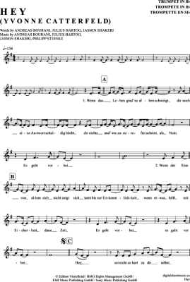 Hey - Noten für Trompete in B Yvonne Catterfeld