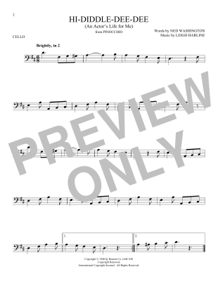 Hi-Diddle-Dee-Dee (An Actor's Life For Me) (from Pinocchio) - Noten für Violoncello Ned Washington & Leigh Harline