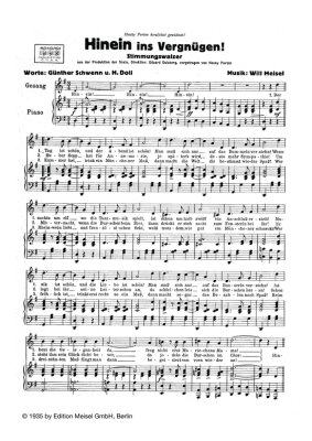 Hinein ins Vergnügen - Noten für Klavier und Gesang Henny Porten