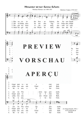 Hinunter ist der Sonne Schein - Noten für Gemischter Chor Melchior Vulpius