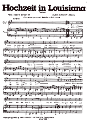 Hochzeit in Louisiana - Noten für Klavier und Gesang Catarina Valente