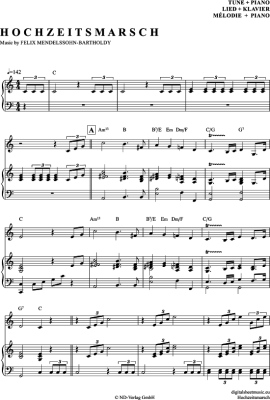 Hochzeitsmarsch - Noten für Klavier + Melodie Felix Mendelssohn Bartholdy